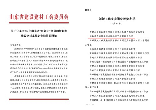 集團(tuán)王超工匠創(chuàng)新工作室獲2025年山東省”魯新杯”全員創(chuàng)新競賽建設(shè)建材系統(tǒng)競賽優(yōu)勝獎